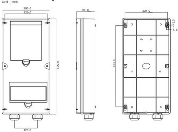 A escala da caixa do medidor da série CAM368-K1 é projetada especificamente para circunstâncias africanas ásperas e tem uma solução costurada para cada lugar. A sala de fiação generosa e os KO bem-localizados do cabo permitem um ajuste-fora rápido, todas as vezes. As caixas do medidor vêm com uma porta articulada especial-projetada, que possa ser removida para ataques longos da manutenção ou da substituição eventual da porta. As grelhas da ventilação dão-lhes uma avaliação IP54, fornecendo a proteção mais do que adequada dos objetos maiores e dirigem-nas pulverizadores de água nos cercos.